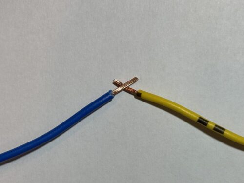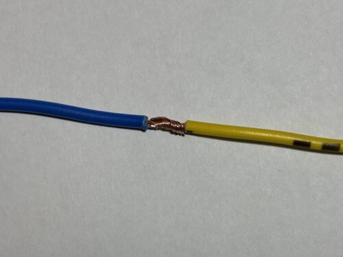 繋ぎ合わせたい配線どうしを写真のようにあわせて、そこからしっかりねじります。