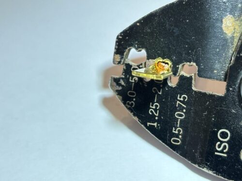 出っ張りがある方がツメ側です。使う配線が1.25sqなので②のツメは真ん中でかしめます。①のツメは左の3.0~5.0でカシメてください。
