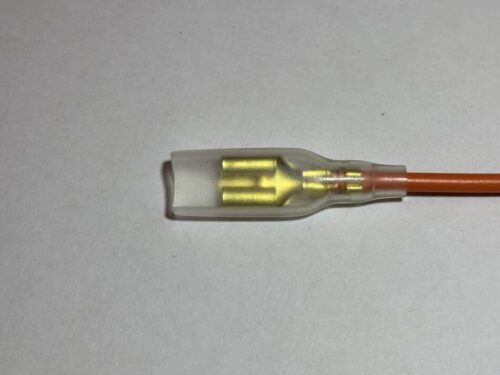 メス端子も取り付け方は同じですがメス端子の方はカシメる前に絶縁スリーブを配線に通してからメス端子をカシメて絶縁スリーブを端子に被せてください。